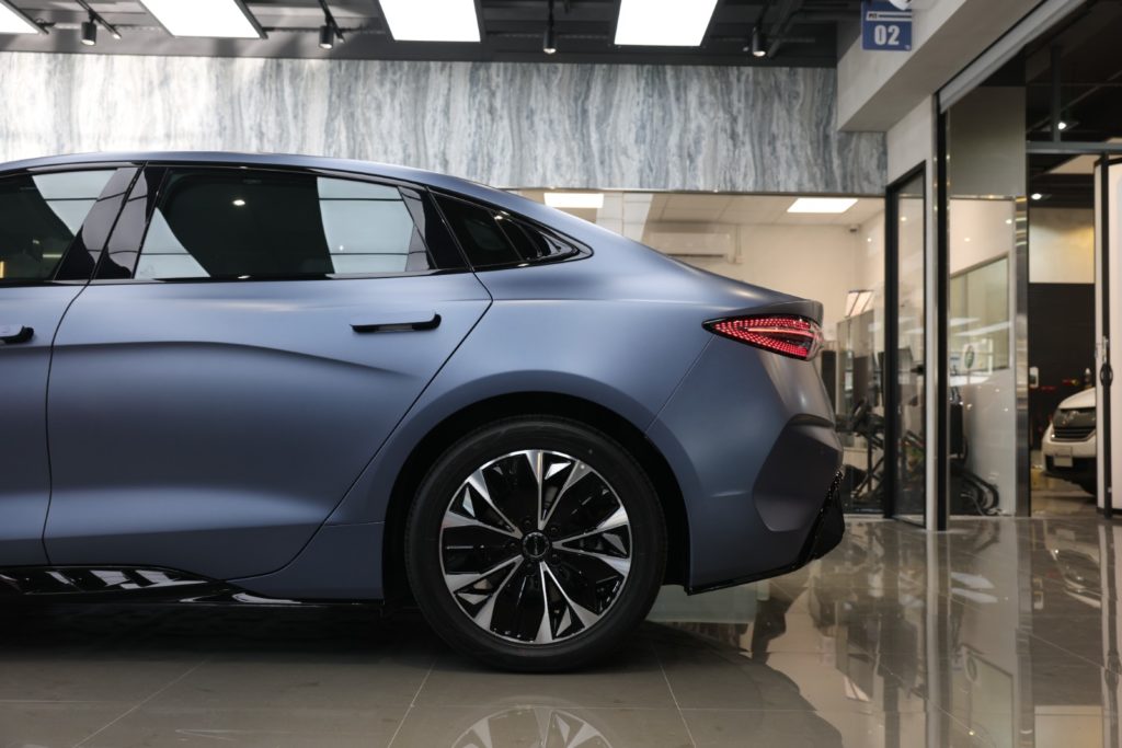 BYD Seal 的流線型車身設計具有多處曲面與縫隙,施工中需要特別注意膜層的貼合度與細節處理。